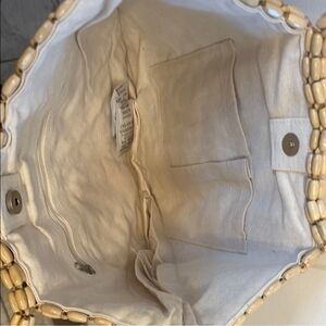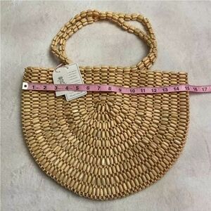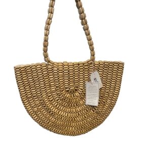 NWT Rachel Ashwell Wooden Beaded Crescent Bag Boho Bead Tote Natural