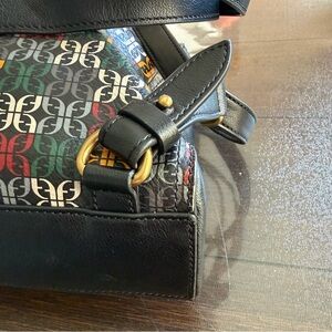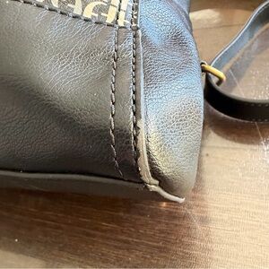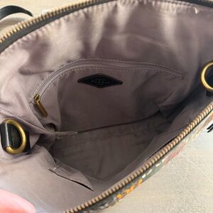 Stylish and versatile, this Fossil signature monogram leather convertible bag is perfect for any occasion. Its unique design adds a touch of elegance to your outfit. Minor wear on front left corner, see photos.