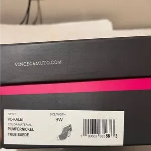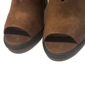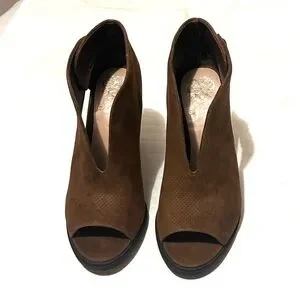 Vince Camuto Kalei Brown Suede Leather Peep Toe V Front Bootie Shoes Size 9WIDE New