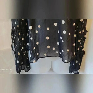 Topshop Black & White Polka Dot Mock Neck Sheer Long Sleeve, size 6