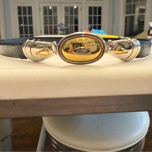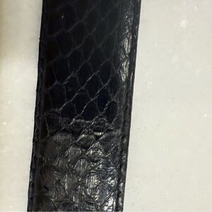 Excellent like new condition. Women’s Dame VTG black Genuine Snake skin belt with gold & silver hook buckle. Size small. See photos for measurements.