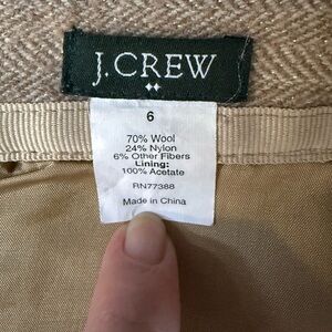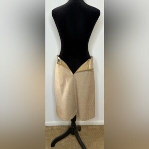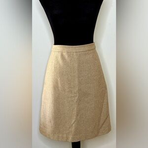 Vintage J Crew wool blend skirt. Camel color with gold throughout. Herringbone design. Knee length. Back zipper.