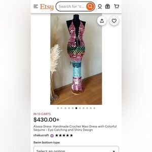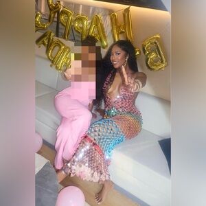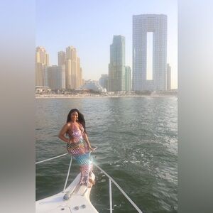 Gorgeous dress, made me feel like a mermaid 🧜♀️🙂 Only worn once for my birthday. I tied the front of the dress when i wore it so that less stomach was out in the front(compare to the style shown in the pictures from the website), but happy to untie it prior to shipping. Will also dry clean.
