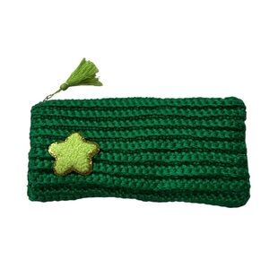 Hand made Charming green knitted pouch featuring a star accent. Perfect for small essentials. Perfect for a make up bag or markers.