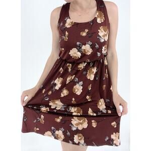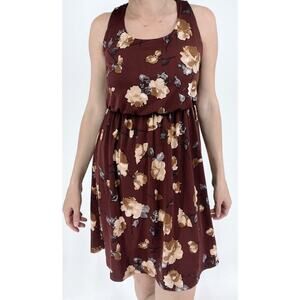 Kaileigh Floral Cross Back Maroon Blouson Dress Size Small