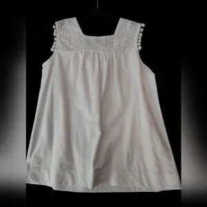 Beautiful Heavy Cotton Crown & Ivy White Tank w Lace detail & pompoms. NWOT. Retails $59. Looks great with denim, khakis, just about everything!