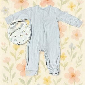 Vintage 90s McBaby Sleeper and Bib Blue Bear Cotton 6-9 months