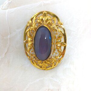 Miriam Haskell Purple stone Gold-tone Filigree Brooch Vintage Large
