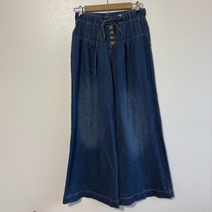 Wide Leg Pleated Waist Button Fly Waist Tie Jeans Boho Hippie Festival Y2K
