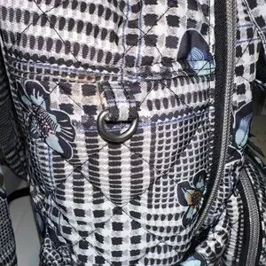 This baby bag boasts a range of special features to meet all your parenting needs. The side pockets are lined with metallic reflective plastic, designed to keep items cold or warm as needed. The front zipper compartments offer convenient storage for essentials like the changing pad and ditty bag, while the hidden pocket on top provides additional storage with a magnetic closure for added security. Plus, the outside of the bag features a metal hook for clipping keys or a pacifier, ensuring they're always within reach.