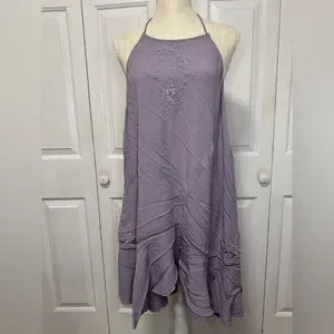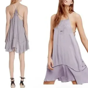 Free People Heat Wave Mini Dress Womens Medium Strappy Back Flutter Hem Lavender