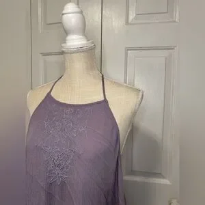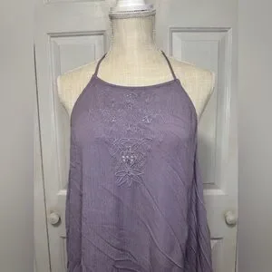 Stylish lavender halter dress with a flowy design. Perfect for casual outings.