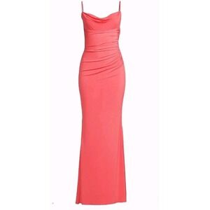 Katie May Salmon Cowl Neck Low Back Fitted Formal Event Surreal Gown - XL