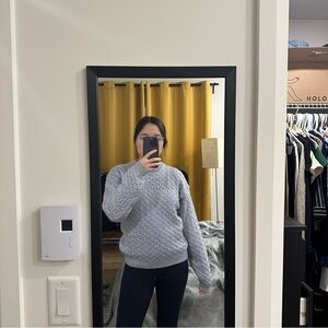 Vintage periwinkle cable knit sweater. Last picture is more accourate for color. Cozy and comfy for winter!
