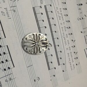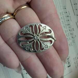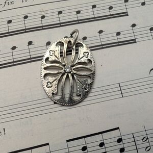 Elegant Silvertone Oval Pendant With Floral Design