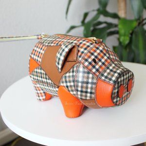 NWT Tory Burch Peggy The Pig Mini Bag, Printed Patchwork Leather