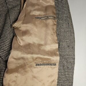 The Savile Row Mens Blazer 46R Brown Sport Coat Jacket in soft tweed plaid is a stylish and versatile piece for any man's wardrobe. This regular-length blazer features a classic two-button front, a four-button sleeve button style, and a single-breasted cut. Perfect for occasions like weddings, parties, or casual business meetings, this blazer exudes a timeless charm with its brown color and tweed fabric. With a chest size of 46 inches and a size 46, this blazer is designed for a comfortable fit and an elegant look, making it a great addition to any collection of men's suits and separates.