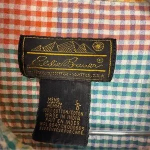 Eddie Bauer Blue and Pink Casual Button Down Vintage Shirt Size Large GUC