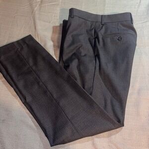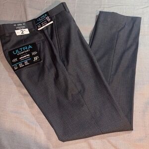 J.Ferrar Mens Super Slim Fit Dress Pants Gray Navy Mini Check 29x30 Adjustec NEW