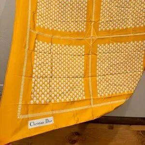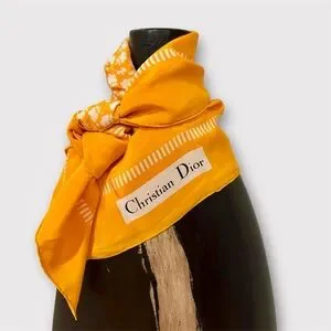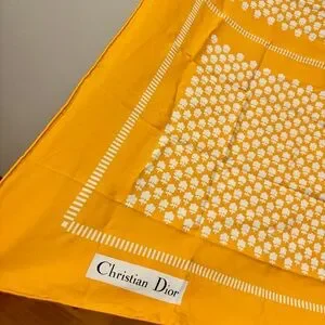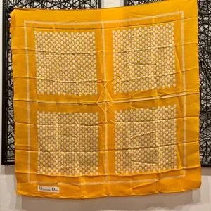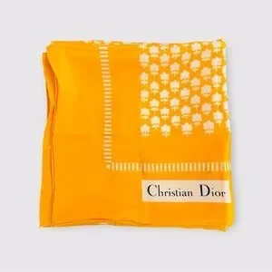The vivid yellow tone is less commonly found than navy or burgundy Dior scarves, making this a standout archival piece.