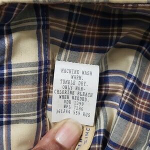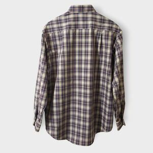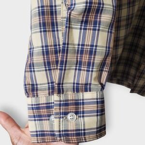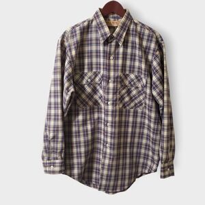 Big Mac Vtg Plaid Work Utility Shirt Large Tan Blue Brown Sz 16-16.5 USA