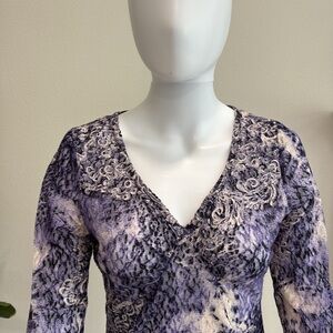 Vintage Yazdi Sheer Floral Mesh Tie Dye Stretch Lace Top Womens Size Small M Y2K