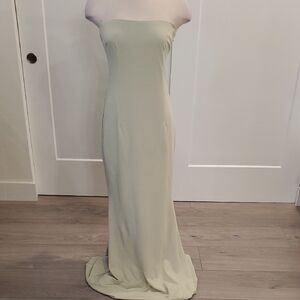 Katie May Strapless sage Green maxi dress with sexy draped back Size L. NWTS