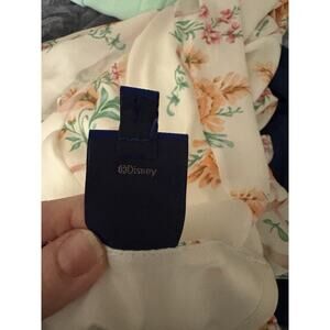 Beautiful Disney Beauty and the Beast dress featuring a soft floral print with ribbon details and delicate lace accenting. This dress has a structured bodice, back zipper with clasp closure, and a fully lined interior for comfortable wear.