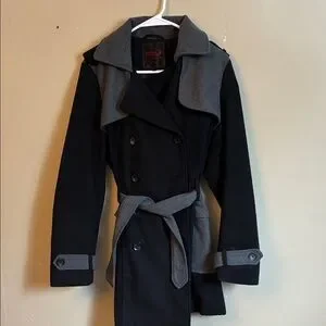 Chic and versatile trench coat by Yoki. Features a classic black and gray color scheme. Perfect for layering in cooler weather.