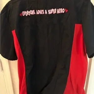 Marvel Superhero Scrub Top 2XL Black Red V-Neck Nurse Comic Graphic. EUC.