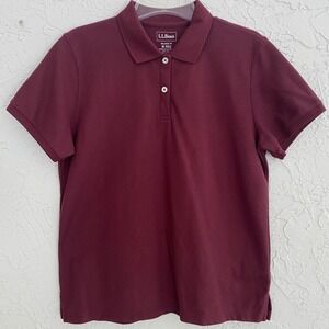 L.L.Bean Double L Relaxed Fit Polo Shirt Women Medium Maroon Pique Knit Cotton
