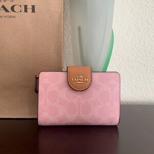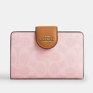 Coach Powder Pink Medium Corner Zip Wallet In Signature Canvas