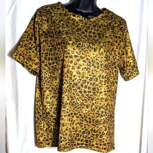 Frye Women's Leopard Print Short Sleeve Top, Made in USA, Layering Piece, Sz M