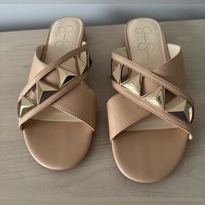 Jessica Simpson Maddie Beige with Gold Studs Slide Sandals / Size 9 / NWOB