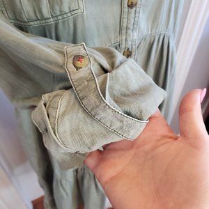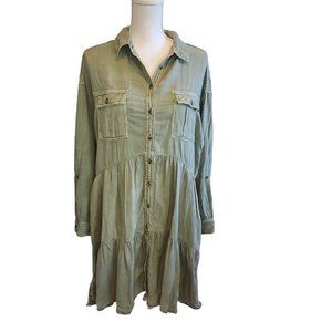 Anthropologie Pilcro Deanne Tiered Shirtdress Green Linen Long Sleeve Sz Sm
