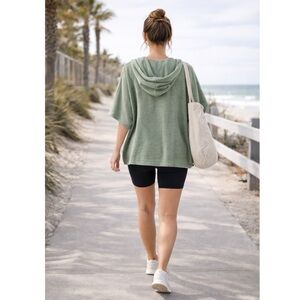 OLI | VIV Sage Green Hooded Short Sleeve Sweatshirt Pocket Sz L Terry Lounge