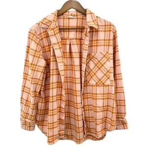 Keywords: Aerie, Plaid, Flannel, Shirt, Button Up, Long Sleeve, Peach, Orange, Casual, Womens, Medium, Top, Relaxed Fit, Layering Piece