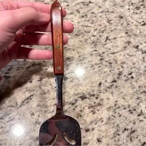 Elegant, but most importantly, great quality pie server with a silver blade and brown wooden handle. Perfect for serving desserts.
