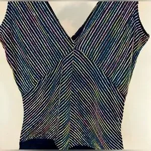 Zara Sparkly Glitter Multicolor Stripe Bodysuit SZ Large