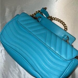 Chic turquoise quilted design. Gold chain strap. Iconic LV logo accent very good replica no scratches or damage.