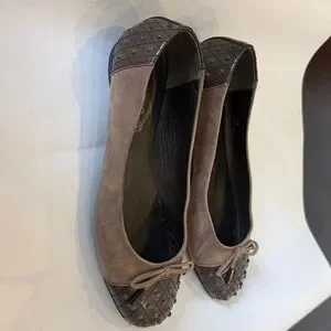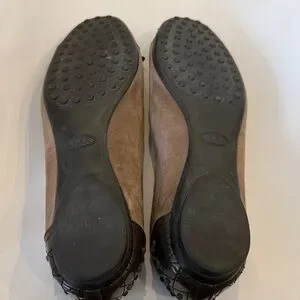 Chic Tod's flats with a two-tone design. Features a bow accent and textured toe.