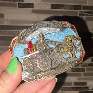 Vintage Firefighters Belt Buckle with Horse and Carriage Design