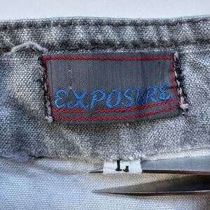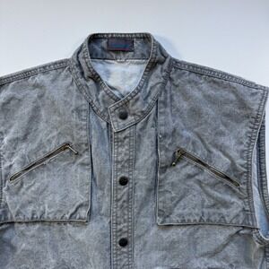 EXPOSURE Vintage Denim Utility Pocket Snap Front Vest Mens Large Gray Grunge 90s
