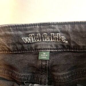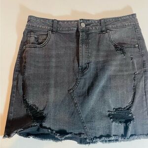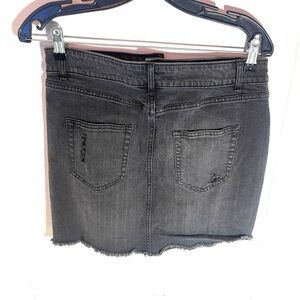 Wild Fable Black Denim Mini Skirt Size 10 featuring an edgy distressed design and raw, frayed hem.