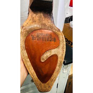 Aged finish, vintage leather with intentional tinting, abrasions, and scarring for a worn-in appearance.