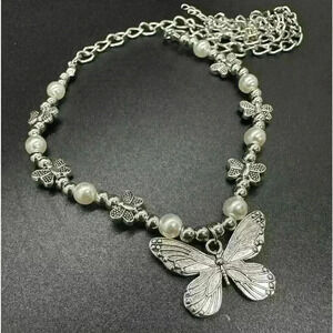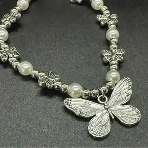 Butterfly Necklace Choker with Pearl charms. Coquette charm necklace 💗