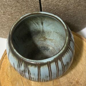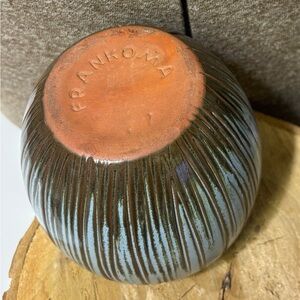 Vintage MCM “Frankoma” T7 coconut tiki ceramic mug. Features a blend of Turquoise/Blue and brown tones.