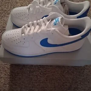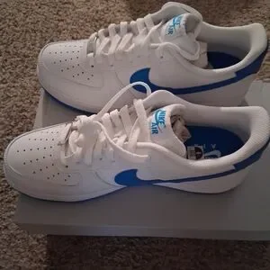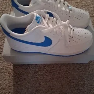 Step up your sneaker game with this crisp two-tone take on the legendary Air Force 1. Featuring premium white leather uppers and striking "Photo Blue" accents on the Swoosh, heel tab, and tongue branding, these kicks offer a perfect blend of '80s heritage and modern style.