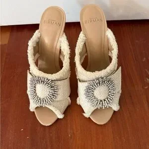 Elegant cream heels with striking silver accents. Perfect for a sophisticated look.
