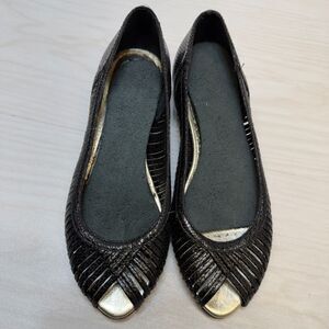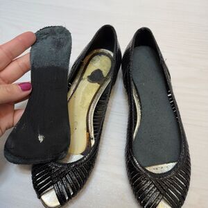 Loeffler Randall Women's Black Leather Peep Toe Flats Size 7.5B Repair